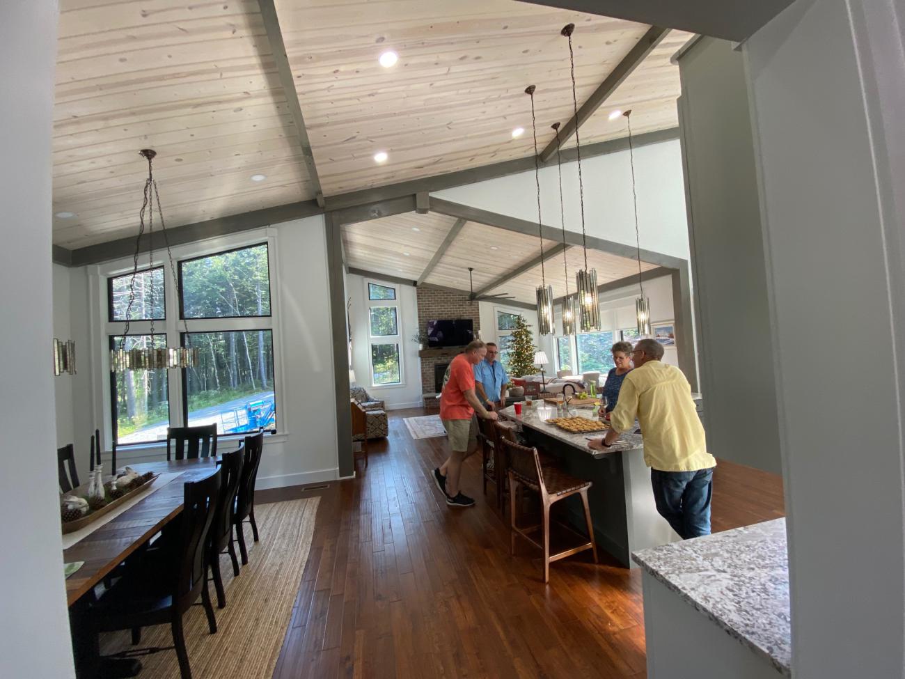At a real estate open house hosted by First Tracts, Seth met Tom and Donna Linski, longtime Snowshoe residents looking to build a new family retreat. Their former one- and three-bedroom condos could no longer accommodate their three married children and grandchildren—especially after years of family events and even two weddings at the resort. What began as a farmhouse-style concept quickly evolved into a bold modern mountain home, inspired by the Sanctuary designs.