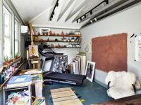 • Creating an art ledge from reclaimed pine salvaged from the original flat ceiling