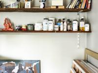 • Using pipe fittings for open shelving to give an urban industrial gallery feel