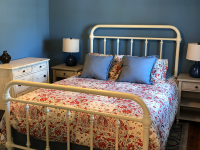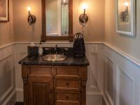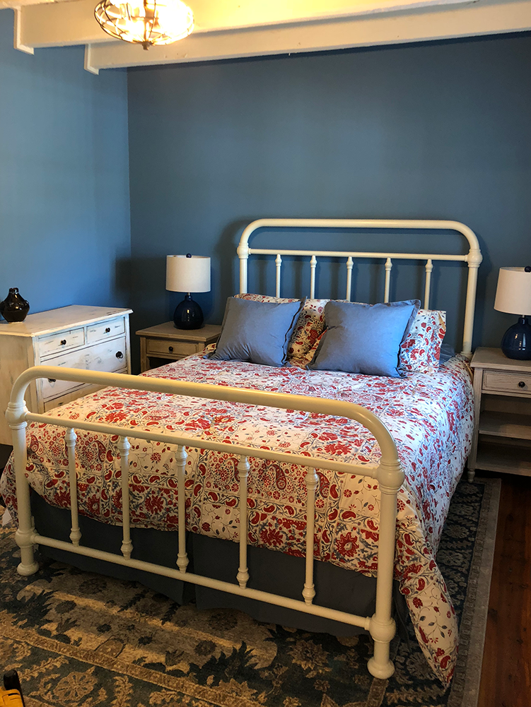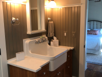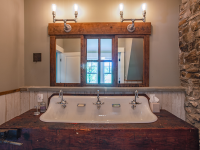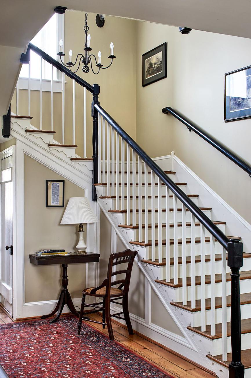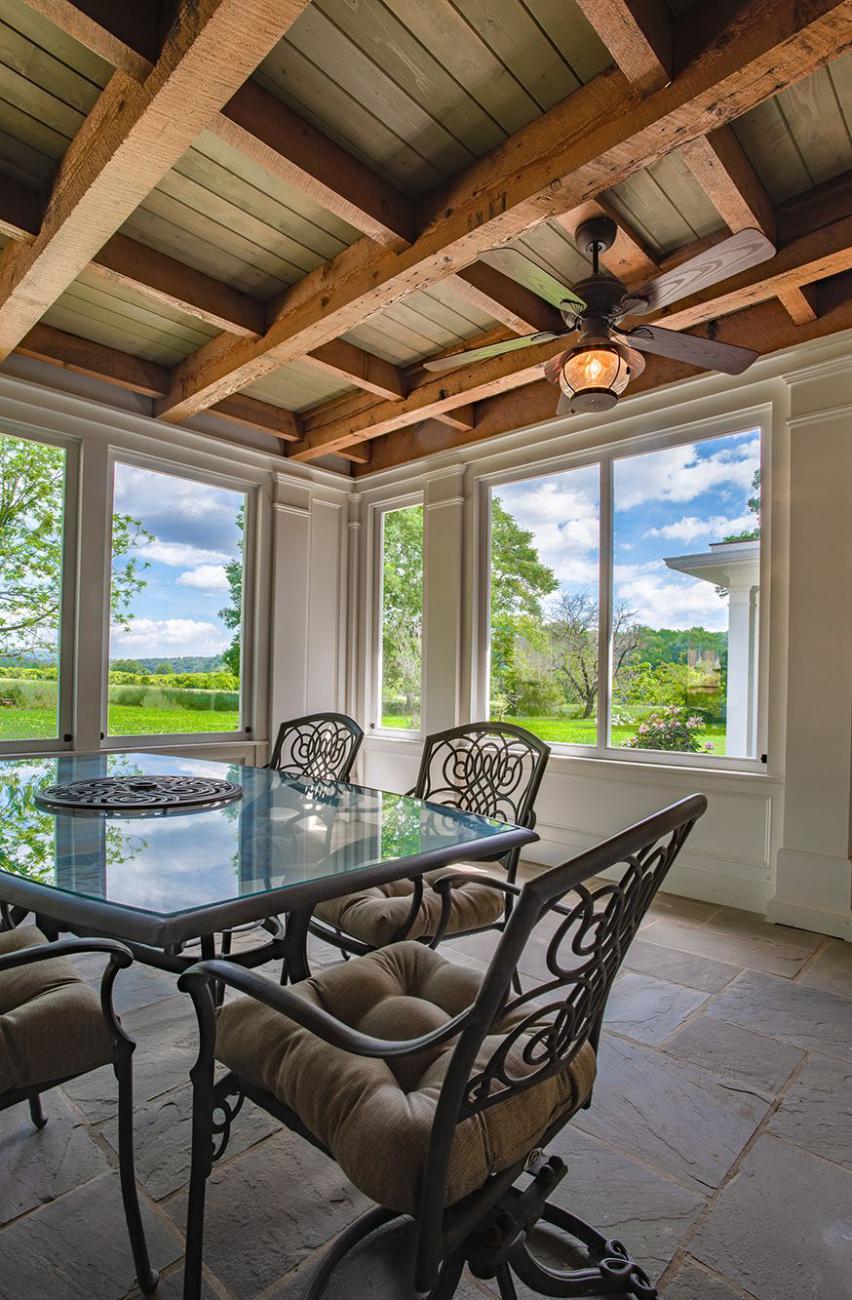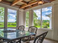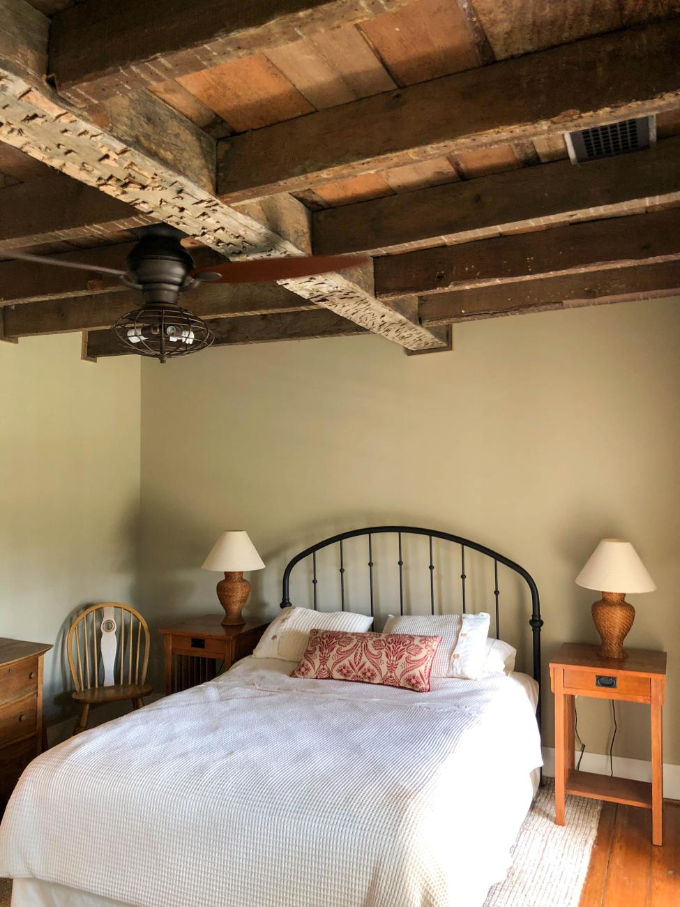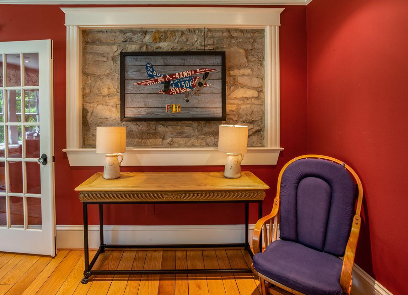 The renovation carefully blended historic preservation with modern comforts: reclaimed flooring, vintage light fixtures, and hand-selected finishes pair with new kitchens, bathrooms, HVAC systems, smart wiring, and insulation. A newly added dormer opens to panoramic river views. The side wing was transformed into a custom farmhouse kitchen featuring character cherry cabinetry, walnut accents, vintage tile, and a bespoke copper hood.