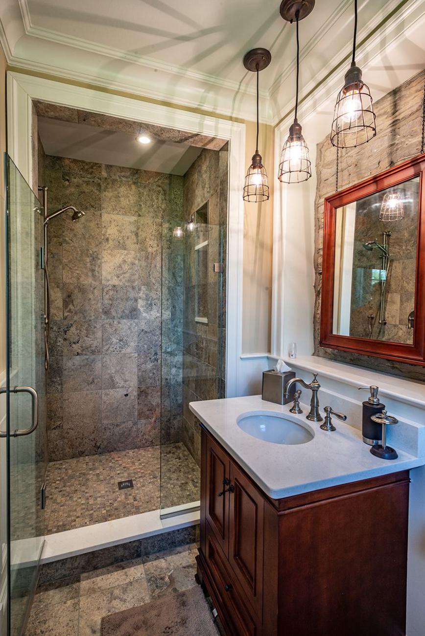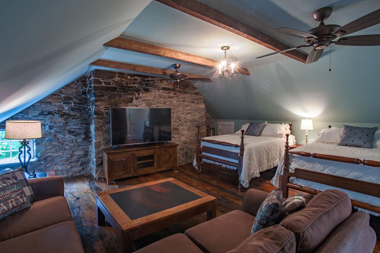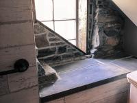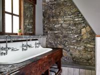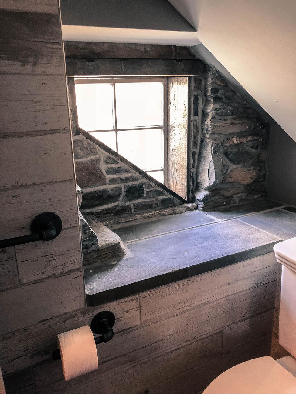 With its two-foot-thick stone walls and well-maintained metal roof, the farmhouse offered a solid yet weathered foundation. The team began by removing the damaged plaster, uncovering a stunning original timber frame that became central to the new design. In the Family Room, the restored wood beams remain exposed, preserving the home’s authentic character.
