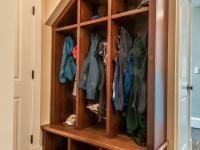 Located at the lower level of a large custom builder home in the Palisades, our client's primary goal was to create a multi-purpose space for entertainment for the whole family and entertaining friends. While most home theatres have theatre-style seating, we did not want to limit the use of the space so we designed the theatre with a sectional couch, a built-in banquette, and a full bar.