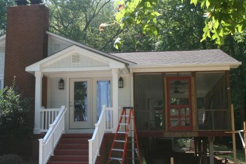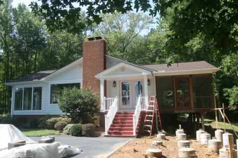 The goal of the project was to beautify the exterior, provide some shade and exterior spaces to enjoy the views, provide a ramp into the home, provide a deck by the water that is accessible, provide accessible hiking trails to move to the campground and around the property and docks, provide a fully accessible fire pit area and to dress up all of the existing sheds and outbuildings to unify the overall architectural look and feel of the property. Also, Tony wanted to add stone and trim to the exterior and landscaping.