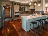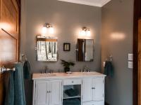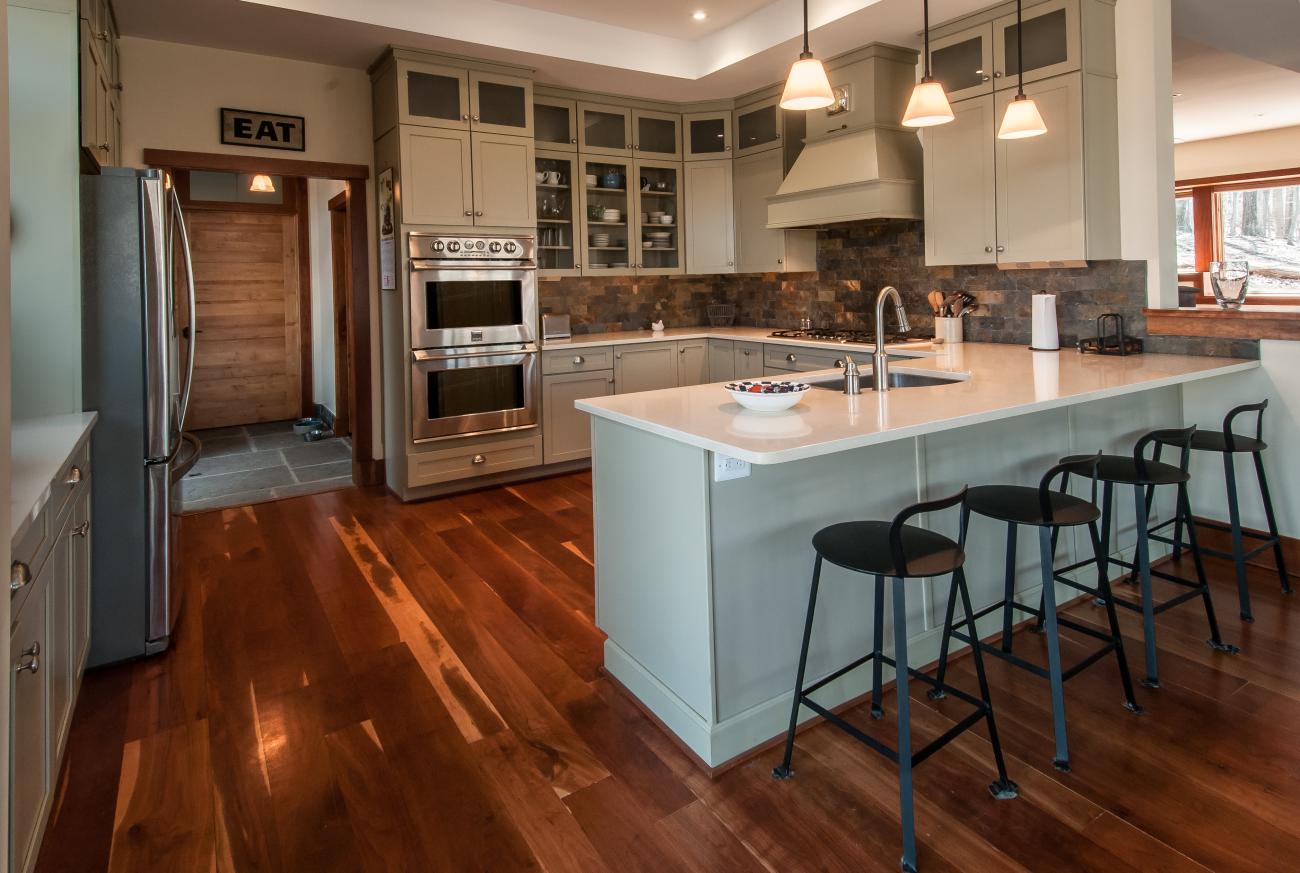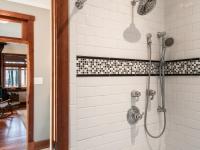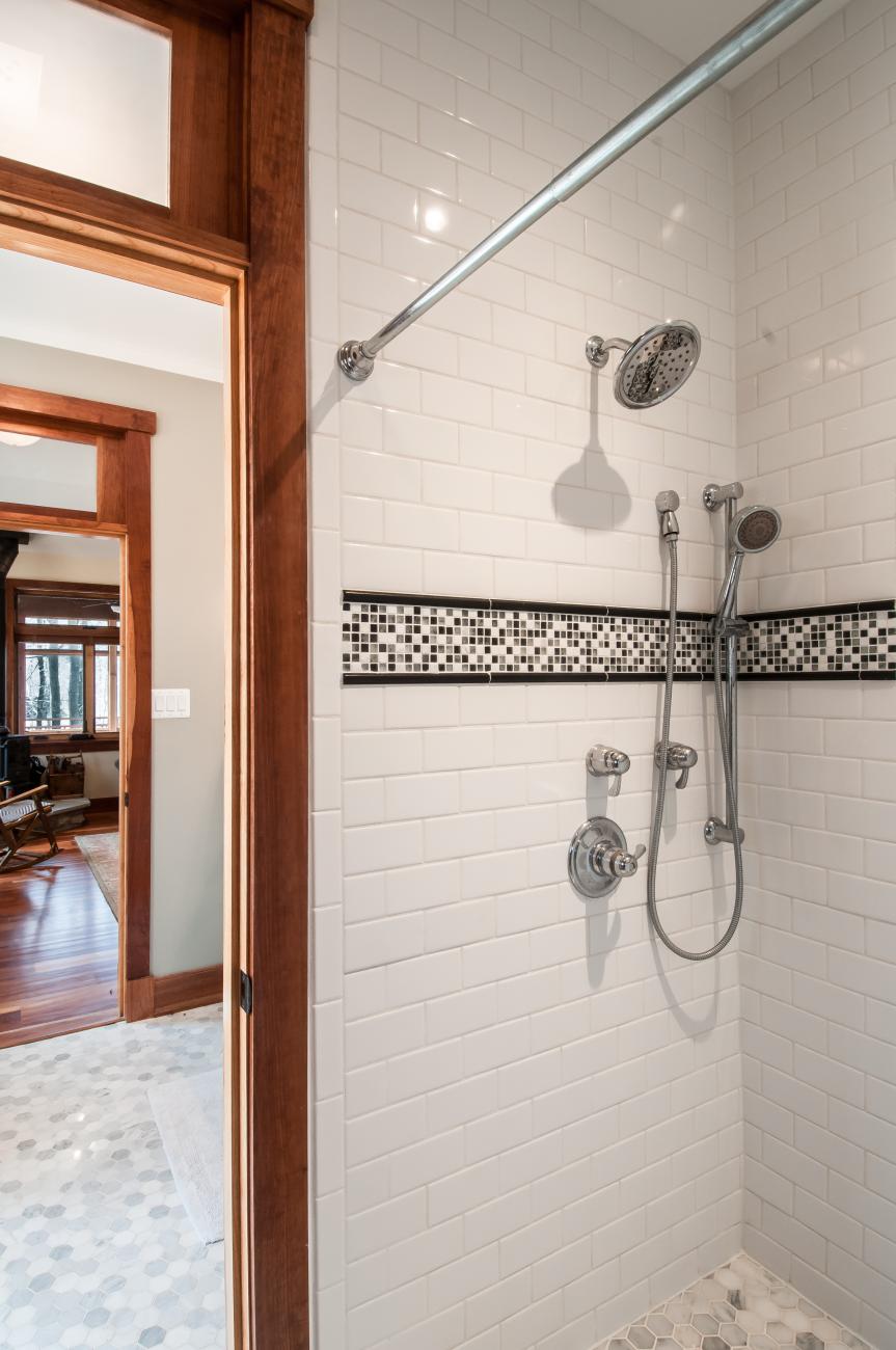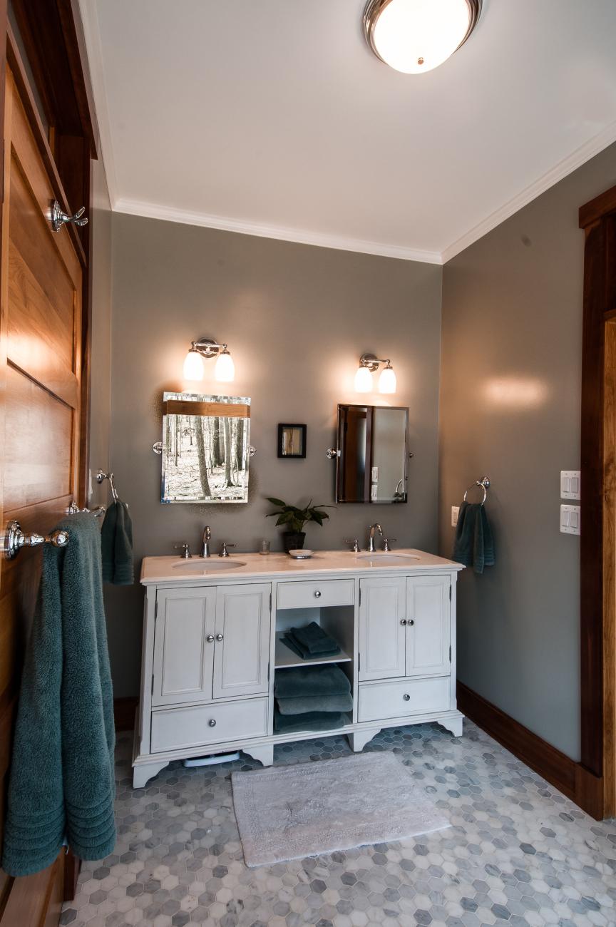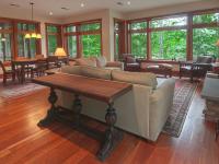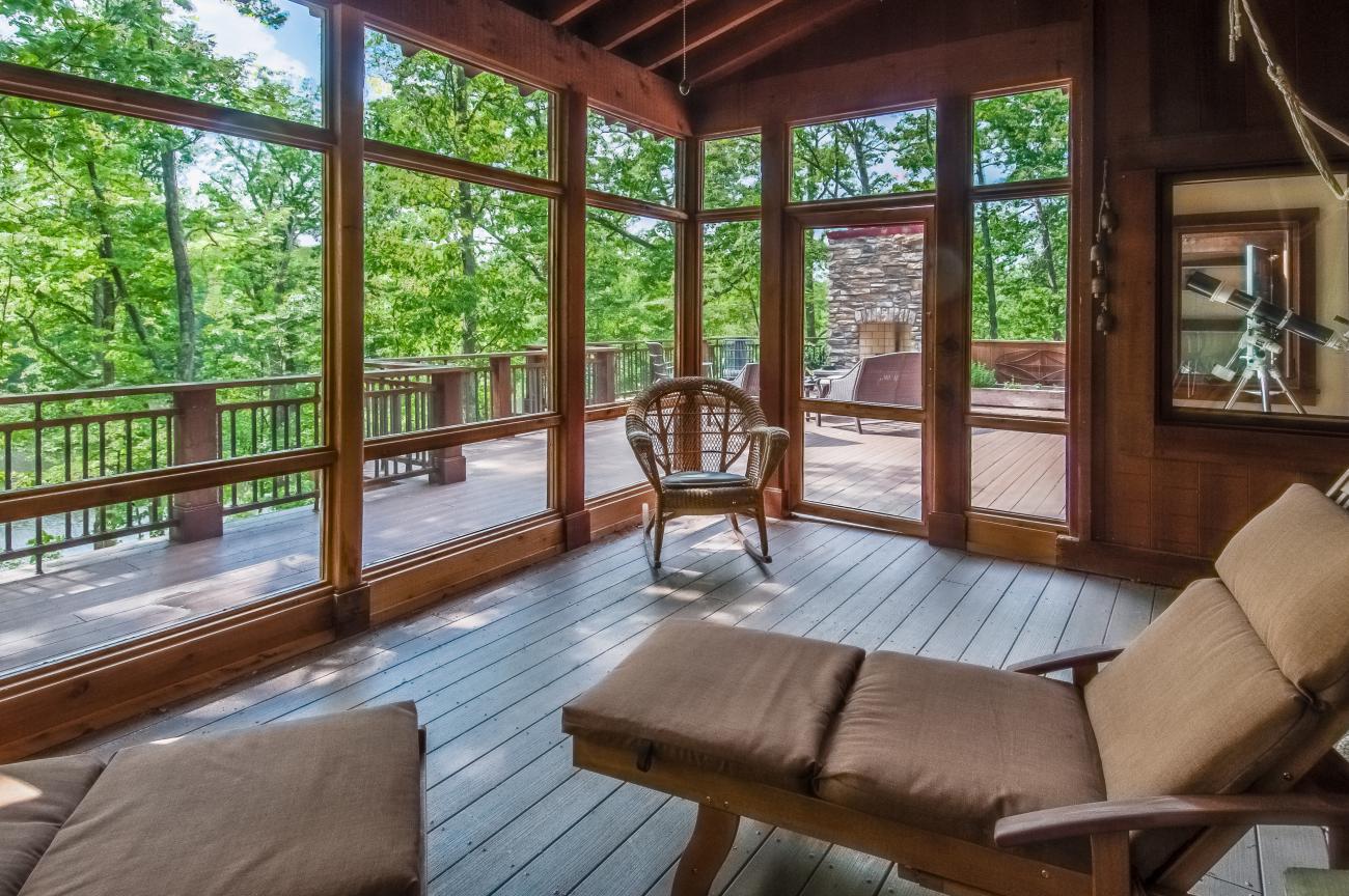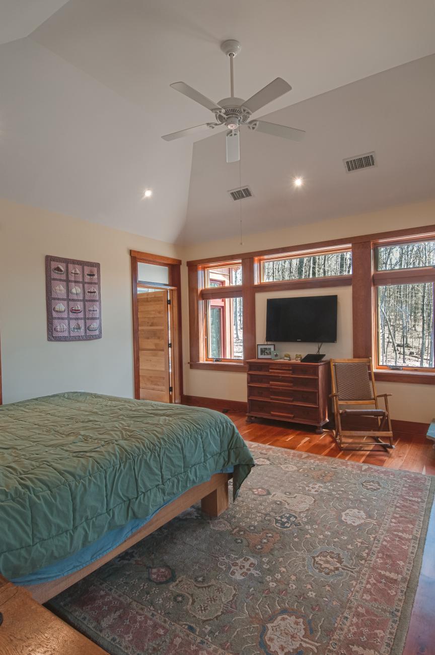We tucked the home in a location to minimize the trees that had to be taken down. The home has insulated concrete walls, geothermal heating, character cherry floors, alder doors, wood stoves to help with heating, eldorado stone walls mixed with cedar siding, and offers two levels of screened porches for enjoying the lake views.